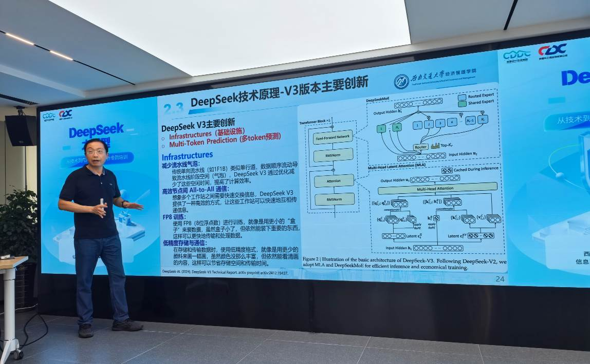在数字化浪潮席卷全球的今天,人工智能正以前所未有的速度重塑各行各业。7月8日,由D体育注册大厅_D体育(中国)主办的“DeepSeek大模型——从技术到应用的全面解析”专题培训在五楼会议室成功举行。本次培训特邀西南交通大学经济管理学院信息系统与运营管理系教授、博士生导师徐进担任主讲,D体育注册大厅_D体育(中国)领导及技术骨干齐聚一堂,共同探索人工智能大模型赋能工程咨询行业的前沿趋势与实践路径。