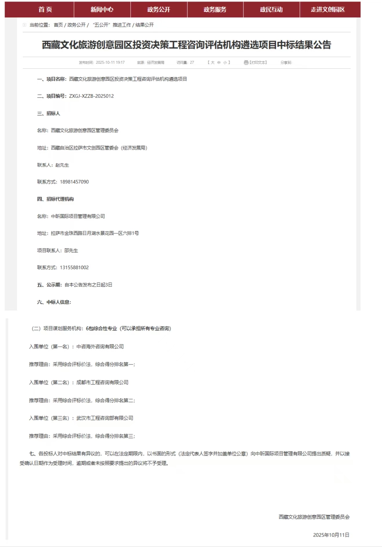 近日,D体育注册大厅_D体育(中国)成功中标“西藏文化旅游创意园区投资决策工程咨询评估机构遴选项目”,未来将作为综合性专业咨询机构,为园区提供覆盖项目全周期的投资决策咨询及评估服务。